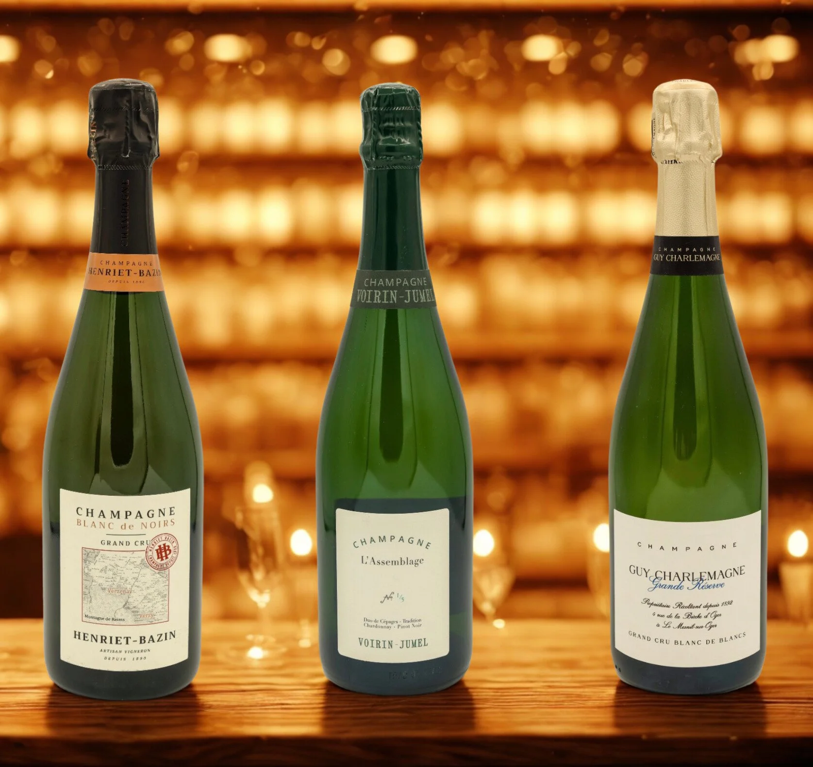 For the holidays, they're offering us a special Holiday Champagne Trio of true Grower Champagnes—artisan bottles from family farmers who grow, harvest, and craft their own wines. Far superior to mass-market brands like Veuve Clicquot.